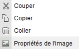 Pour accèder à l'assistant vous permettant de définir les propriétés de l'image insérée dans votre page, faites un clic droit de la souris sur la vignette-image. Dans la fenêtre qui s'ouvre, cliquez sur "Propriétés de l'image".