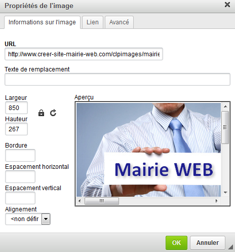 La fenêtre concernant les propriétés de l'image s'ouvre.