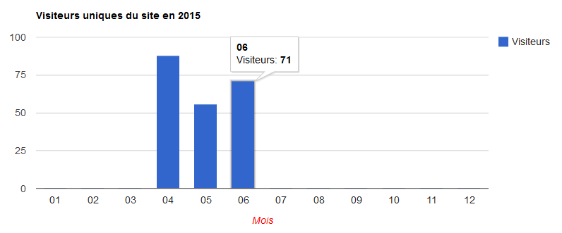Si vous positionnez le curseur de la souris sur l'un des éléments de l'histogramme, une bulle vous indique le nombre exacte pour le mois donné.