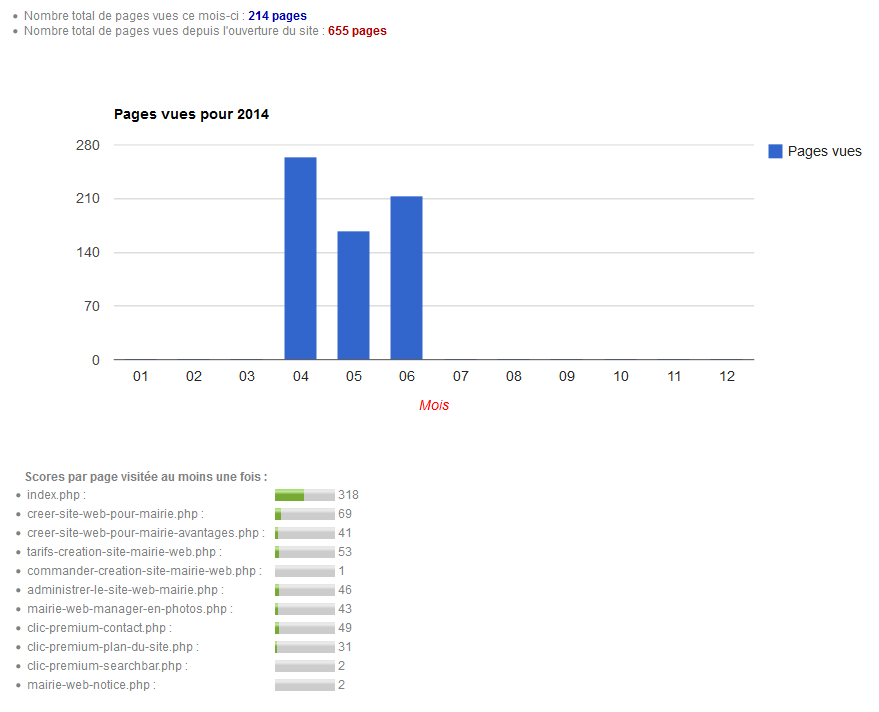 Les statistiques concernant les pages vues, vous donnent les informations suivantes :
